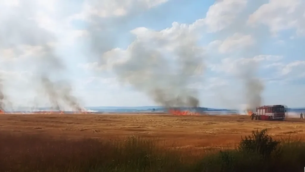 Plameny a kouř viditelný zdálky. Třetí stupeň poplachu vyhlásili hasiči při požáru pole v Přibicích na Brněnsku hasiči. U Přibic…